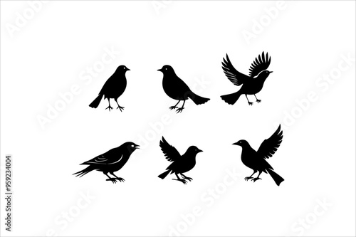 Obraz premium "Bird Silhouettes Collection: Black Bird Silhouettes on White Background -...