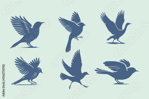 Fototapeta premium Bird Silhouettes in Various Poses for Wildlife and Ornithology Illustrations
