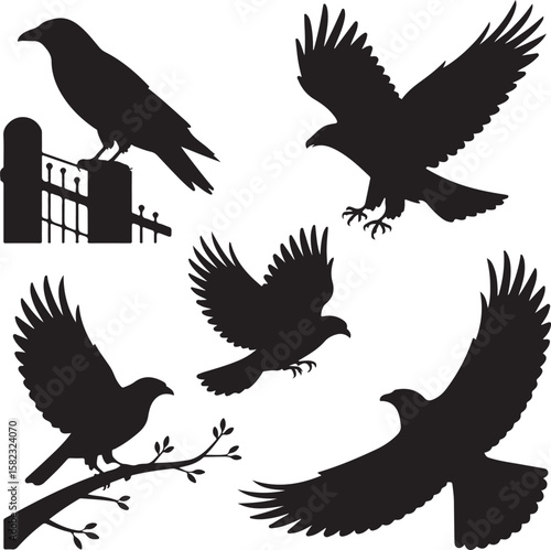 © mdamirhossan, Obraz premium "Bird Silhouettes Set – Elegant Black and White Bird Icons"
