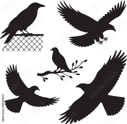Obraz premium "Bird Silhouettes Set – Elegant Black and White Bird Icons"