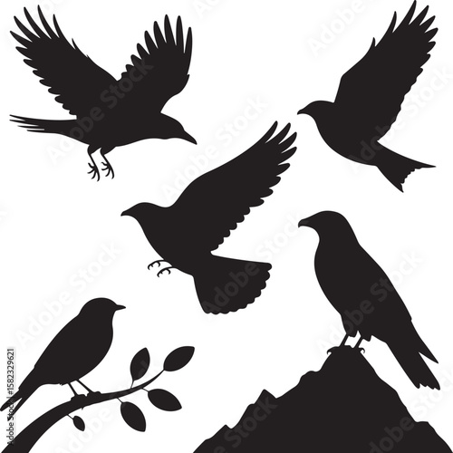 © mdamirhossan, Obraz premium "Bird Silhouettes Set – Elegant Black and White Bird Icons"
