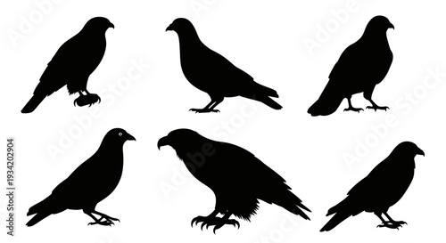 Fototapeta premium Bird Silhouettes Set, Various Hawk and Eagle Poses on White Background