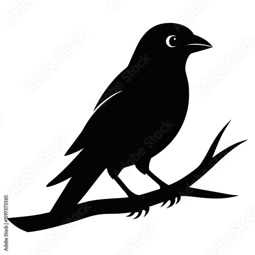 © Zahedul, Obraz premium Bird sitting on branch silhouette vector