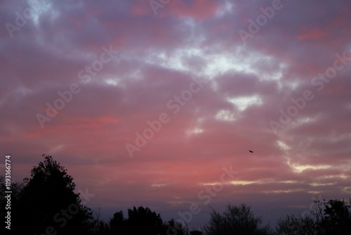 © Wirestock, Fototapeta premium Bird soaring against a vibrant sunset sky