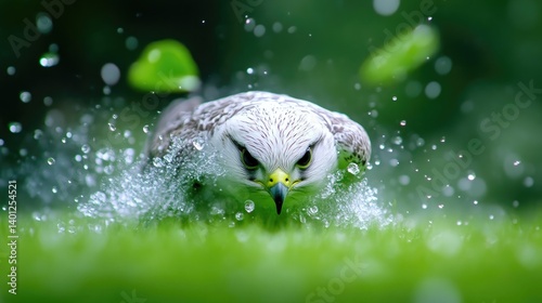 © Giman, Obraz premium Bird splashes in water, close-up view of raptor