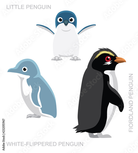 © bullet_chained, Obraz premium Bird White-Flippered Penguin Set Cartoon Vector Illustration