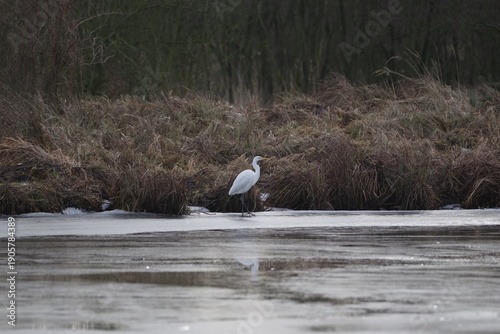 Obraz premium bird white heron (Ardea herodias) in the winter scenery