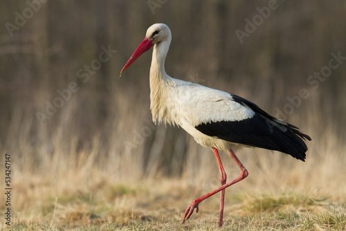 © Marcin Perkowski, Naklejka premium Bird White Stork Ciconia ciconia hunting time early spring in Poland europe
