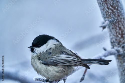 © afefelov68, Fototapeta premium Bird - Willow Tit ( Poecile montanus ) sitting on a branch of a tree. Close-up..