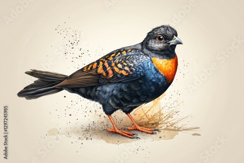 © Space Priest, Fototapeta premium Bird with orange and black feathers is standing on a sandy surface