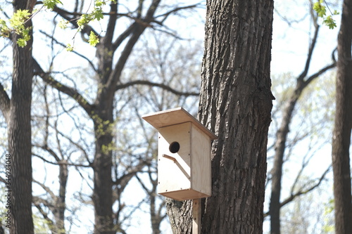 © urra, Naklejka premium birdhouse for birds on a tree in the park