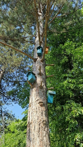 © Maria Iacubovscaia, Fototapeta premium Birdhouses on a tall tree