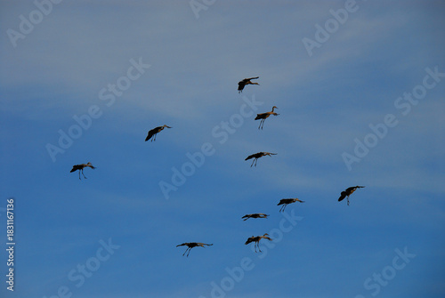 Obraz premium birds-alaska-beautiful-flock-sandhill-cranes flying-landing