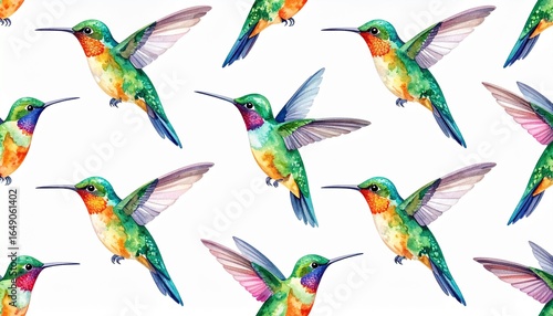Obraz premium Birds, colibri, hummingbirds, seamless, light, background, pattern, wallpaper, colorful, tropical, exotic, nature-inspired, repeated, decorative, artistic, vibrant, flying, delicate, small, ornamental