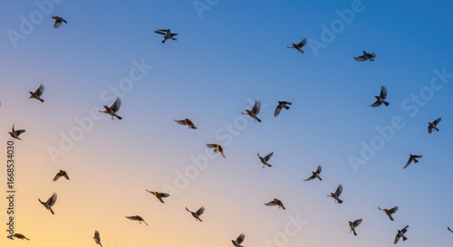 Obraz premium Birds flying in the blue sky in morning showing freedom wildlife nature...