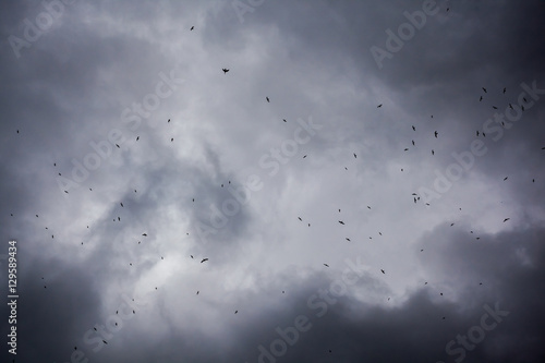 Fototapeta premium Birds flying in the stormy clouds sky