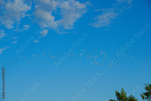© Otar, Obraz premium birds in the sky. pigeons in the blue sky with white clouds