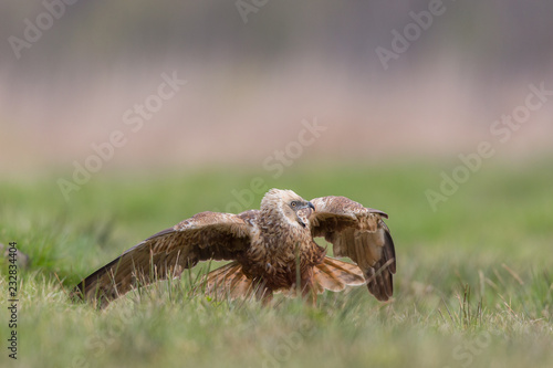 Obraz premium Birds of prey - Marsh Harrier (Circus aeruginosus), landing,