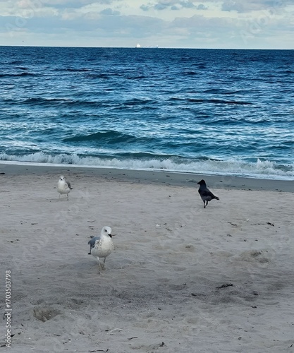 © Monika, Obraz premium Birds on a Tranquil Beach