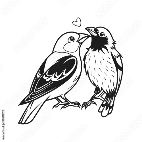 © RAZAUL, Naklejka premium birds on branch - love and romance concept.