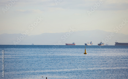 © KAPSAMUN SERGHEI, Obraz premium birds on the sea and on lights in turkey