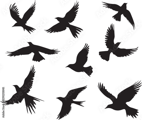 © Irfan Vector , Fototapeta premium Birds Set flying black silhouette