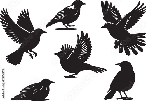 © Sabbir, Obraz premium birds set vector black and white , white background