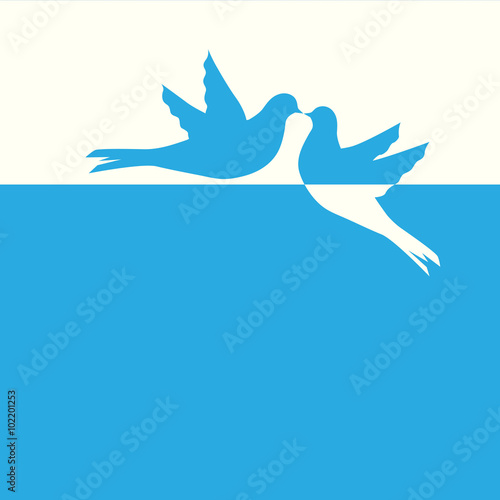 © lakalla, Fototapeta premium Birds silhouettes - flying pigeons