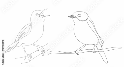 © zolotons, Fototapeta premium birds sitting on a branch one continuous line drawing vector, isolated
