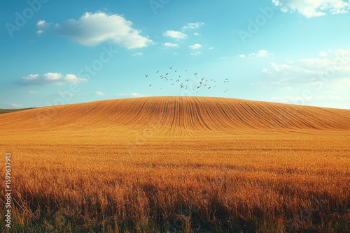 © Nigina, Fototapeta premium Birds soaring over a wheat field.
