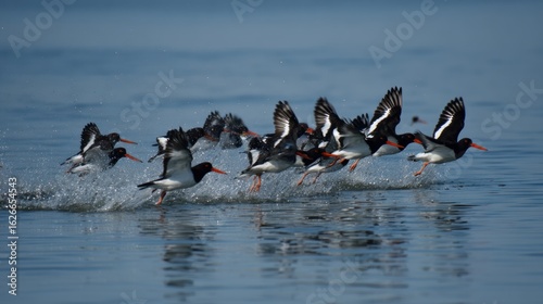 Fototapeta premium Birds taking flight over water