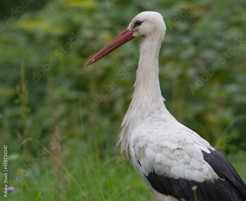 Fototapeta premium Birds - White Stork (Ciconia ciconia) in summer meadow with beautiful...