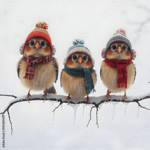 © CreativeAi, Fototapeta premium Birds with scarfs and hats