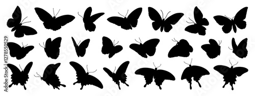© Mori Takai, Naklejka premium Birdwing, swallowtail and morpho butterflies on transparent background, black silhouette illustrations