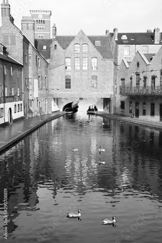 © Tupungato, Fototapeta premium Birmingham canal - Gas Street Basin. Black and white vintage style.