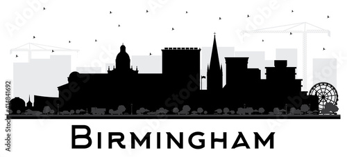Obraz premium Birmingham UK City Skyline Silhouette with Black Buildings Isolated on White.