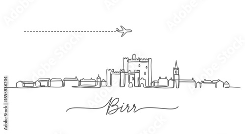© godsfavoritearts, Obraz premium Birr Skyline Single line airplane art.