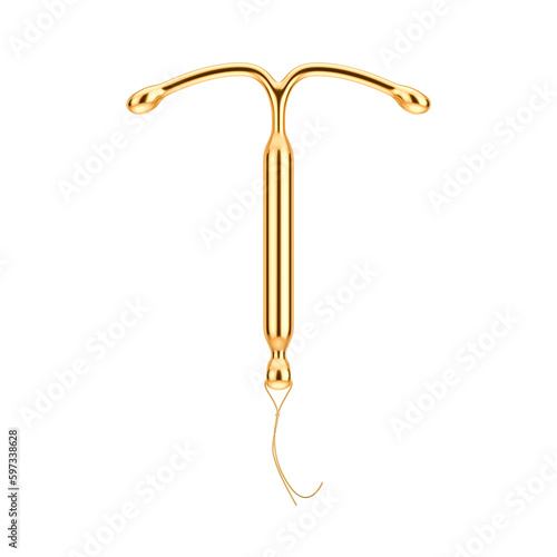 Fototapeta premium Birth Control Concept. Golden T Shape IUD Hormonal Intrauterine Device. 3d...