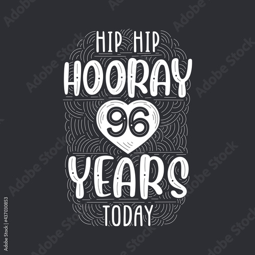 © NetArt, Naklejka premium Birthday anniversary event lettering for invitation, greeting card and template, Hip hip hooray 96 years today.