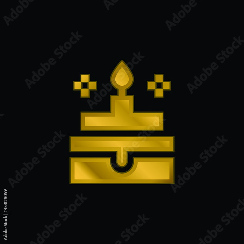 Obraz premium Birthday Cake gold plated metalic icon or logo vector