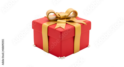 © Noor, Fototapeta premium Birthday cake shaped like a gift box, isolated on white background