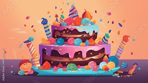 © Jawad, Obraz premium Birthday Cakes Generative AI