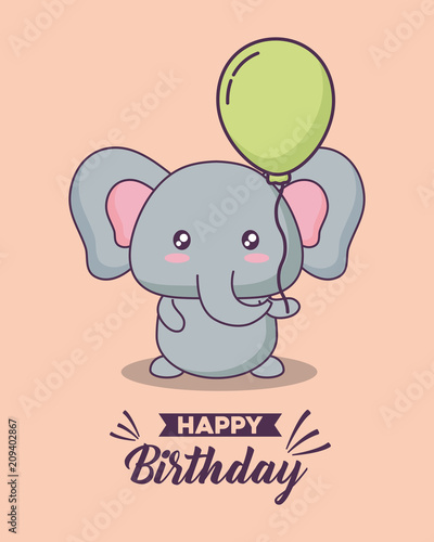 Fototapeta premium birthday card with cute elephant kawaii character vector illustration design