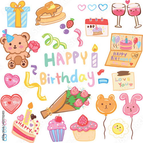 © Dawangpiiz, Fototapeta premium Birthday Happy Bday vector element set cute HBD cake and gift