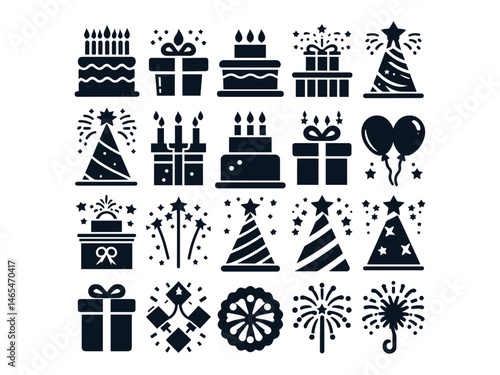 © Theekshana, Fototapeta premium Birthday Items Vector Icon Pack
