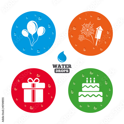 Fototapeta premium Birthday party icons. Cake and gift box symbol