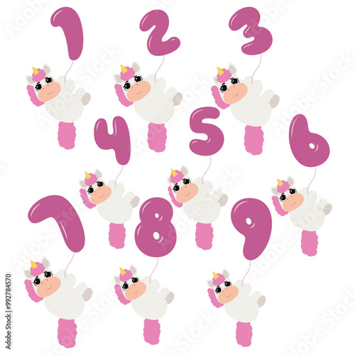 © Makoto Artist, Obraz premium Birthday party invitation with baby unicorn