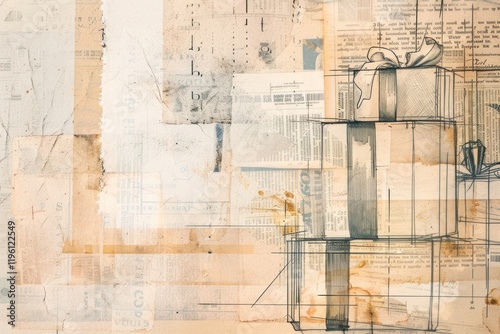 Obraz premium Birthday presents ephemera border backgrounds drawing paper.