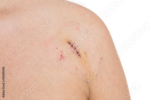 © Thunderstock, Fototapeta premium Birthmark or mold removal concept with stitches or strings