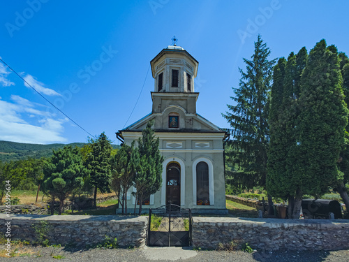 © Dorota, Fototapeta premium Biserica Sfântul Nicolae, Racovița, Romania – 29 June 2025, full facade